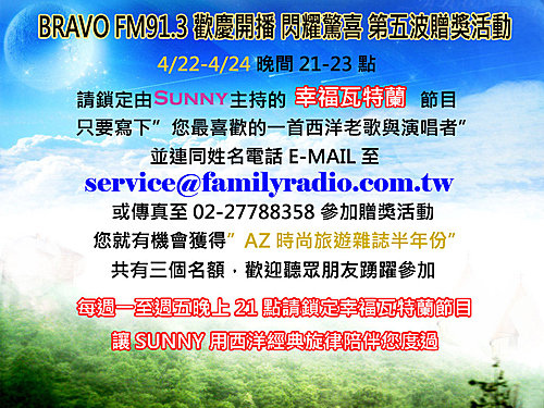 -- BRAVO FM91.3歡慶開播 閃耀驚喜 第五波贈獎活動 --